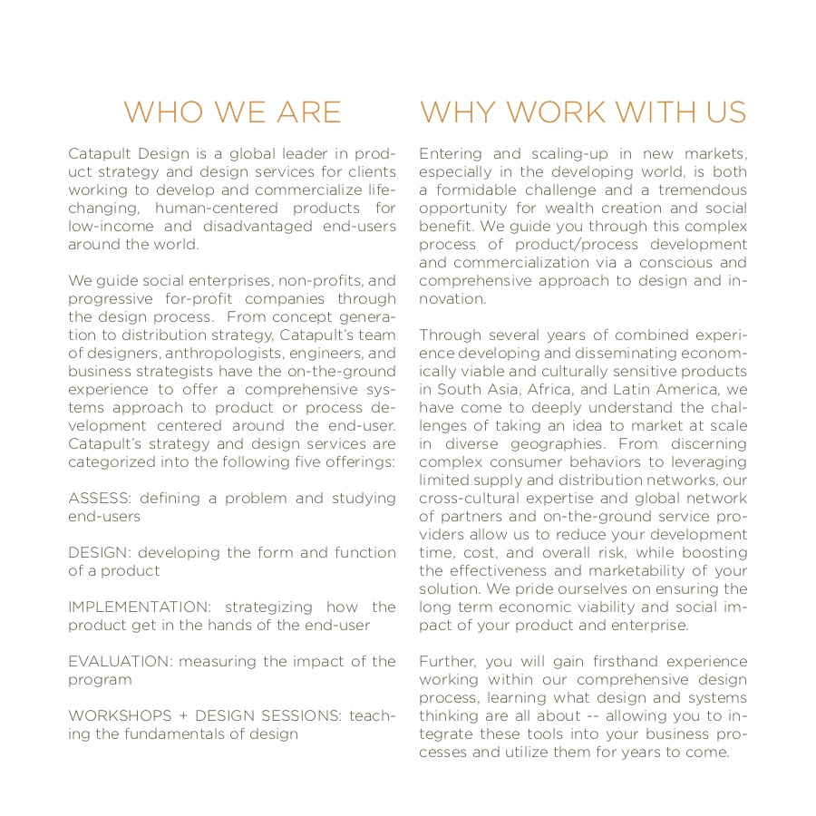 A video describing the services (and mission/values) of a social-impact product design consultancy.
